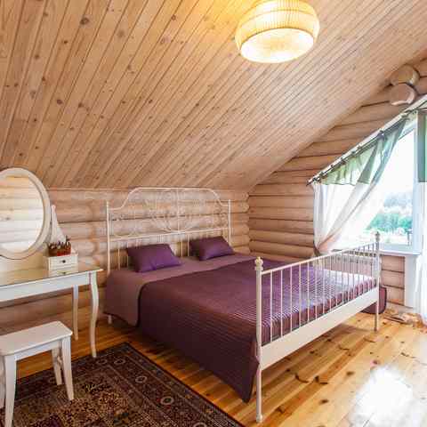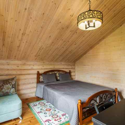 Дизайн виллы «Ласточкино гнездо» в Логойском районе очень гармоничный: в декоре удачно сочетаются натуральное дерево и камень. Помещения отделаны сосной, используются кованые элементы в интерьере, витые лестницы и массивные люстры. В вилле теплые мраморные полы. Вся территория ухоженная и благоустроенная, есть свой пруд, в котором водится много форели. Здесь очень душевно, атмосфера уютная и гостеприимная.
